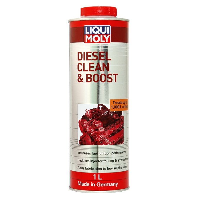 Liqui-Moly Diesel Clean & Boost is an advanced fuel additive for all diesel engines. It noticeably reduces typical diesel engine clatter and engine noise by increasing the ignition performance (cetane number) of diesel fuel. This formulation will also improve engine performance and acceleration, whilst reducing injector fouling, exhaust smoke and emissions.