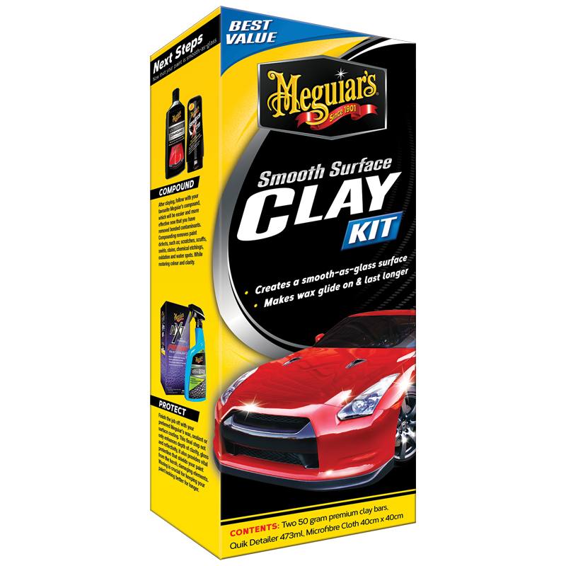 Meguiar’s Smooth Surface Clay Kit safely restores a smooth-as-glass feel to your paint by removing bonded contaminants from the surface. The clay bar safely traps and lifts off contaminants as you lubricate the surface with Quik Detailer. Use the included Microfibre Cloth for the final wipe down of each cleaned section.