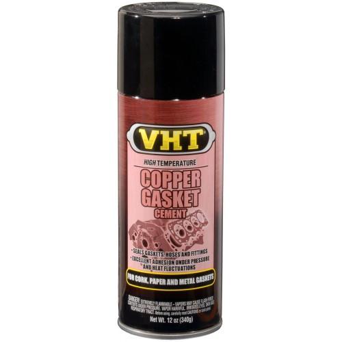VHT Copper Gasket Cement maintains excellent adhesion under severe pressure and heat fluctuations. This high metallic formula assures tight seals on cork, paper and metal gaskets. VHT Copper Gasket Cement has been extensively tested on racing engines in the field and on dynamometers, where it has met and exceeded the high compression requirements of super-powered engines. It also is an excellent seal for threaded fittings and pressure hose connectors.